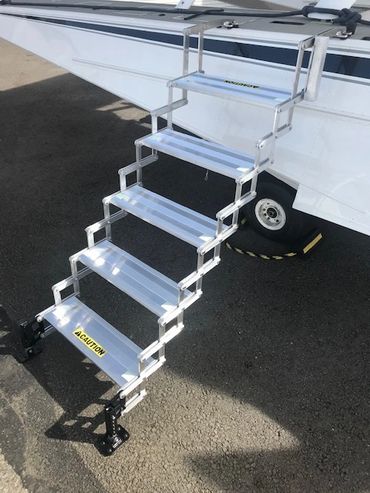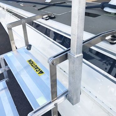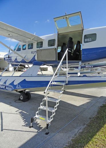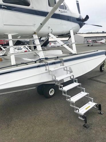 Our all-new Easy Way Amphib Steps provide a safe, sturdy, natural way to walk on and off your amphibious floats. Made of 100% lightweight aircraft-grade aluminum and stainless steel, these collapsible steps are easily stowed in the float locker.